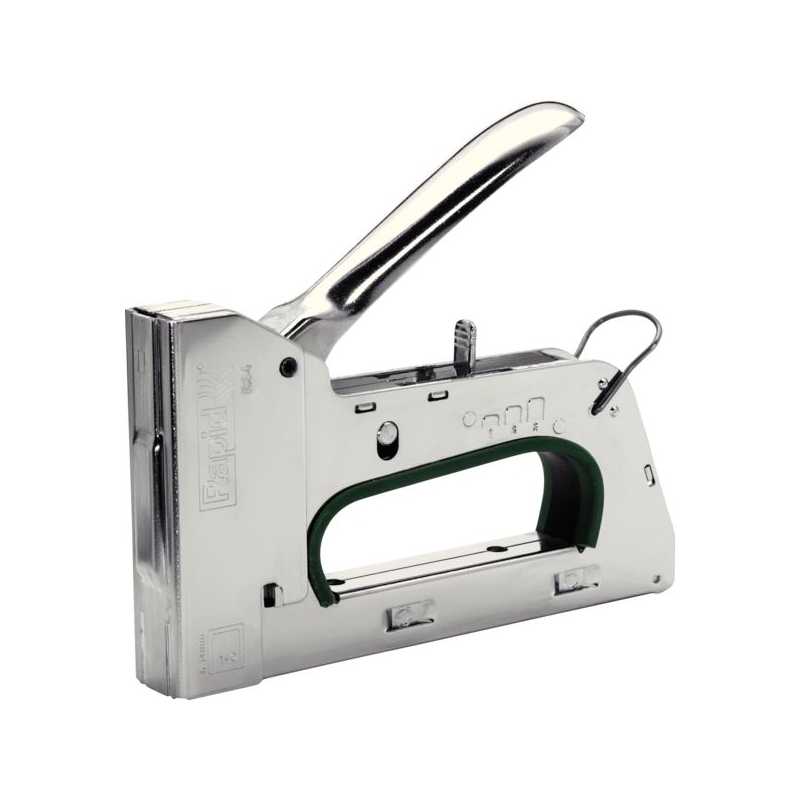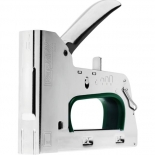 Convient pour la pose de dalles de plafond, de revêtements plastiques, de matériaux isolants. Corps acier chromé. Réglage de force 3 niveaux. Système antirecul. Chargement par le dessous. Utilise des agrafes n°140 de 6 à 14 mm. Chargeur : 84 agrafes Poids : 820 g