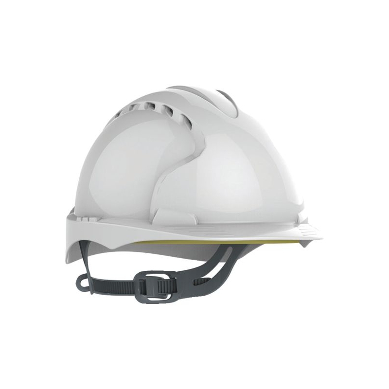 Calotte en polyéthylène haute densité. Visière courte et ventilée. Basane anti-sudation en Chamlon, coton égyptien avec enduit poreux en PU. Serrage glissière. Poids : 375 g Coloris ventilé : blanc, bleu, jaune, orange, rouge, vert Coloris non ventilé : blanc Normes : EN 397 - EN 50365 (1000 V) classe 0