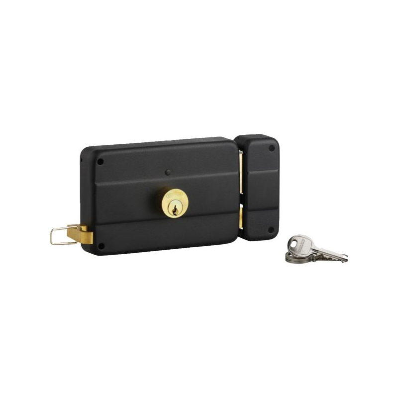 Acier embouti. Pêne et ½ tour en laiton. Mécanisme à 3 tours. Rappel du ½ tour par la clé. Double cylindre (diamètre 25 mm) laiton 5 goupilles. Entrée de cylindre et de fouillot en acier. Livré avec gâche et 3 clés laiton nickelé. Dimensions coffre : 140 x 90 mm Longueur : 45 mm Entraxe : 120 mm Fouillot carré : 6 mm Conditionnement : boite