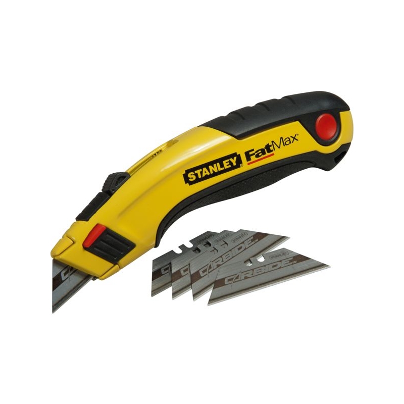 Corps en acier et revêtement bi-matière, lame rétractable. Remplacement frontal de la lame sans outils par simple pression sur le bouton. Réglage de sortie de la lame sur 4 positions différentes selon la profondeur de coupe. Réservoir de 5 lames. Livré avec 5 lames trapèze au carbure de tungstène.