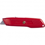 Lame auto-rétractable: retour automatique de la lame lorsqu'on lâche le bouton poussoir ou lorsque la lame n'est plus en contact avec le matériau à couper Corps métallique, livré avec une lame trapèze à bouts arrondis.