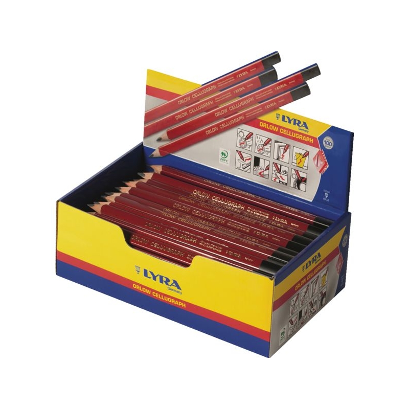 Crayon multi-supports (bois, verre, béton, carrelage, zinc). S'efface facilement sur les surfaces lisses. Forme triangulaire. Longueur : 24 cm Conditionnement : boîte de 100
